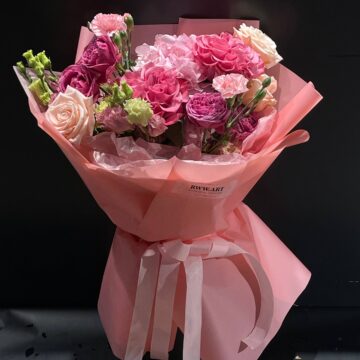 Ніжні акценти для «обіймів» у букеті — еустома та гортензія. Еустома додає м’якості, нагадує про турботу без пафосу й добре поєднується з трояндою або діантусом. Гортензія створює відчуття об’єму й домашнього затишку, коли хочеться показати: подяка не тільки за вчинки, а й за атмосферу, яку мама вміє тримати в домі.