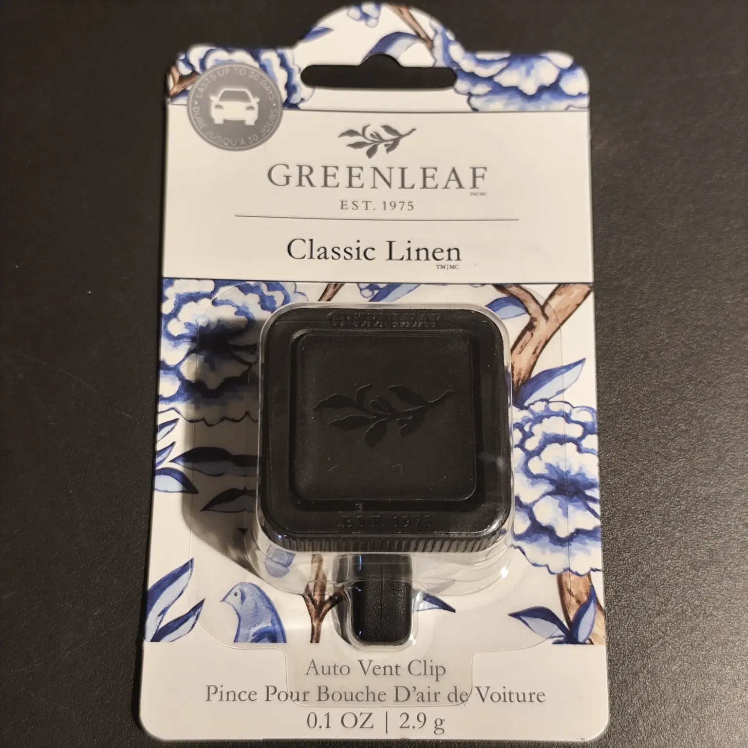 Автокліпс Classic Linen (Класік Лінен) дарує аромат свіжості та чистоти — неначе щойно випрана білизна, висушена під сонцем. Універсальний аромат, що подобається більшості. Виготовлено у США брендом Greenleaf.
