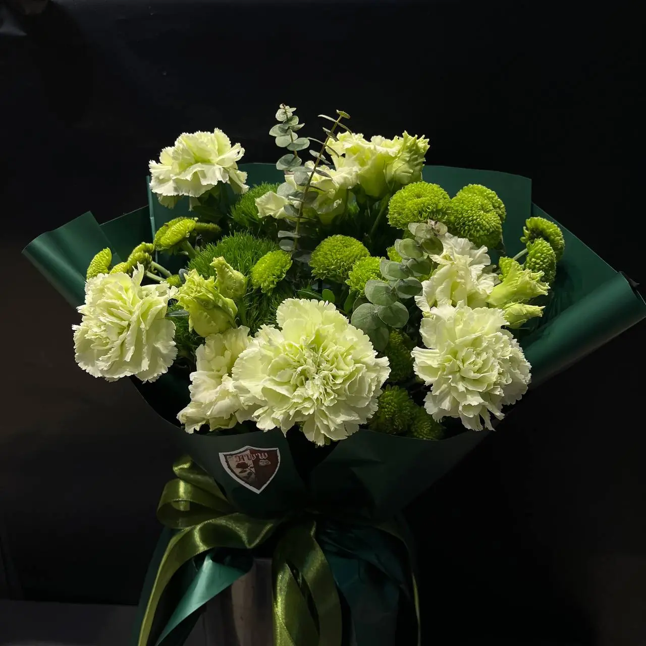 Авторський букет від RWW ART пасує для подарунка, привітання чи особливої події. У складі композиції поєднано Гвоздика Зелена, Діантус – Голландія, Евкаліпт Бебі Блу, Еустома (Фісташка) Голландія та Хризантема Код Грін, зелена.