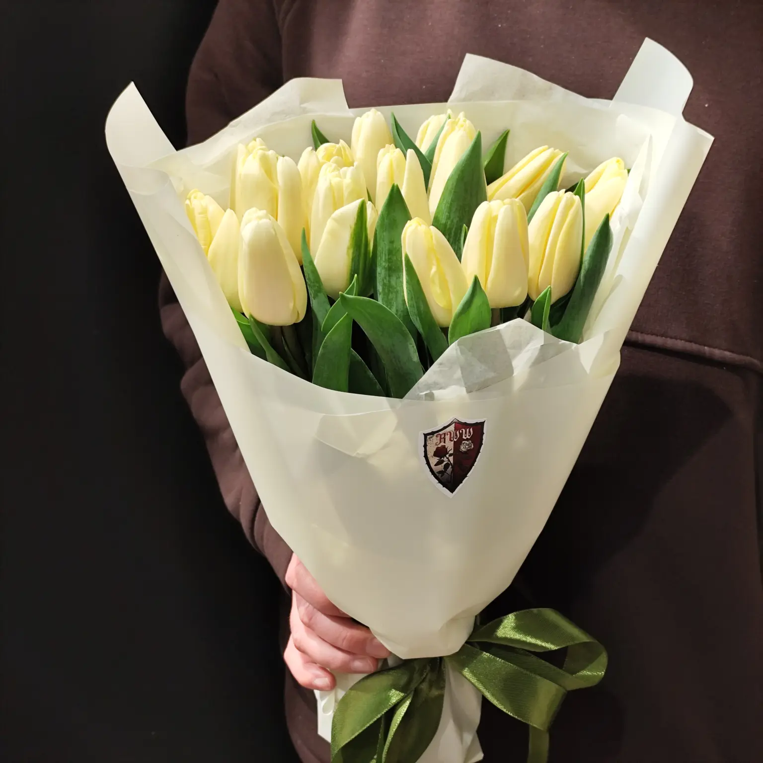 Букет з 15 лимонних тюльпанів