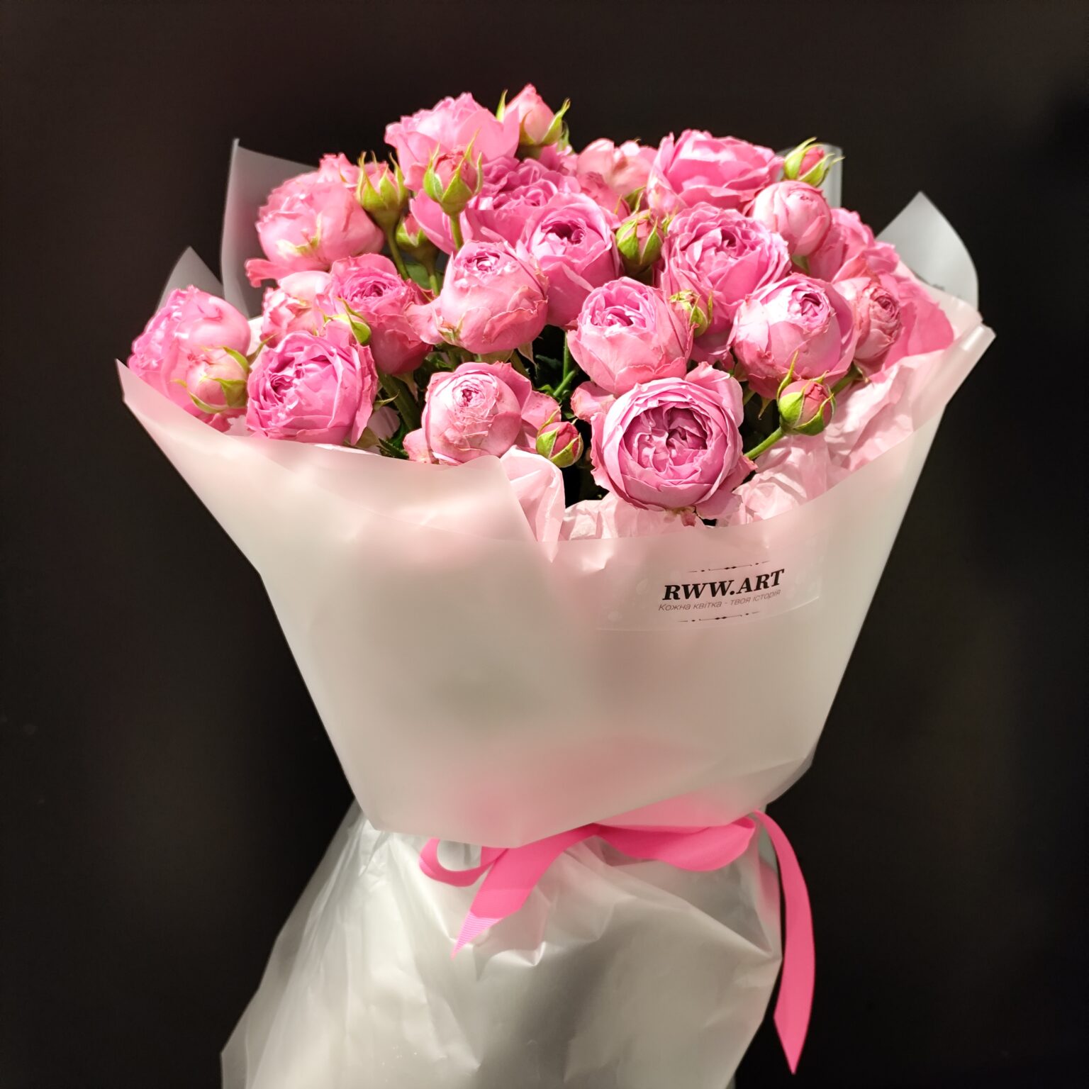 Букет з 9 гілок піоновидної кущової троянди Місті Баблз
