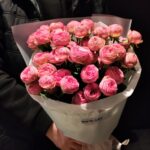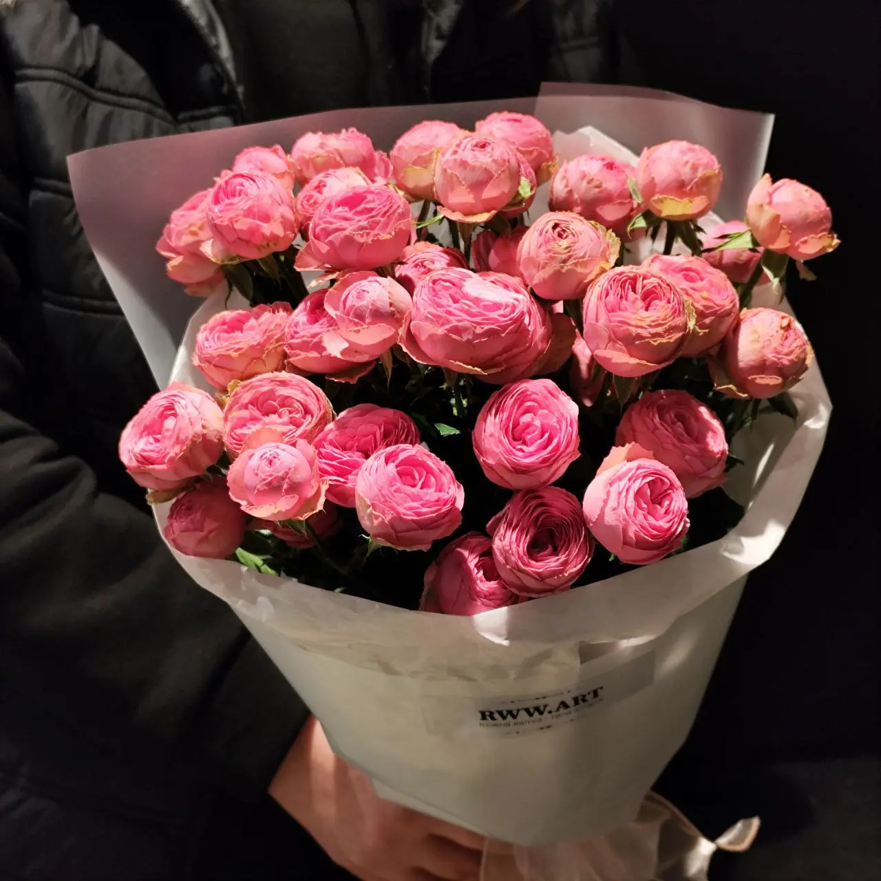 Букет з 9 гілок рожевої голландської піоновидної троянди
