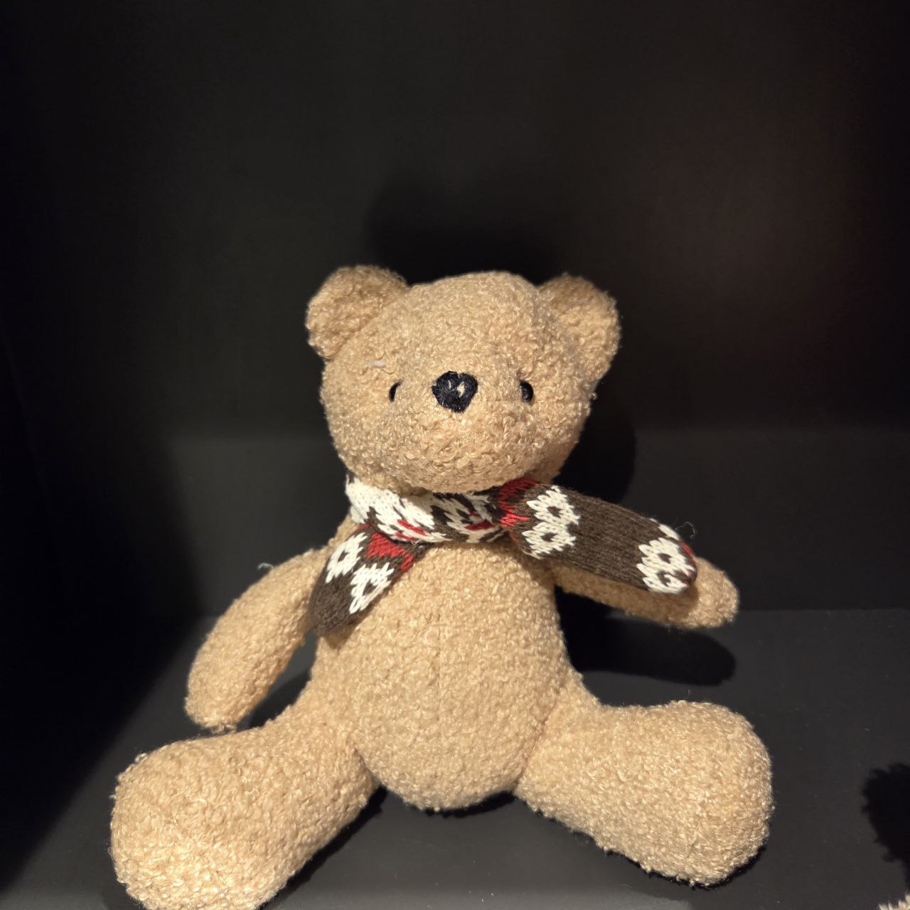 Мʼякий ведмедик з шарфом — компактна іграшка висотою приблизно 17 см у бежево-червоній палітрі. Виріб має приємну фактуру та спокійну візуальну насиченість, що створює відчуття тепла й домашнього комфорту. Акценти червоного додають святковості без надмірностей.