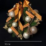 Різдвяний вінок №6 переносить у казкову атмосферу зимових свят. Густі гілки литої ялини сяють серед червоних і золотих відтінків, нагадуючи про домашнє тепло, аромат кориці та приємний передзвін новорічних куль.