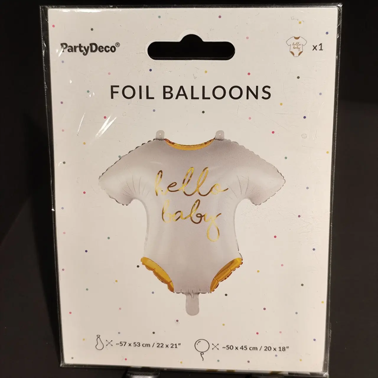 Ця стильна фольгована кулька у вигляді бодіка з написом ‘Hello Baby’ стане чудовим доповненням до вашого святкового декору. Вона ідеально підходить для зустрічі малюка та створює атмосферу радості і тепла. Виготовлена з міцного матеріалу, кулька зберігає свою форму та яскравість протягом тривалого часу. Вона стане чудовим подарунком на свято для новонародженого або на baby shower.