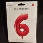 Ця велика фольгована кулька у вигляді цифри “6” стане чудовим доповненням до святкового декору. Виготовлена з високоякісного матеріалу, вона зберігає яскравий колір та форму, забезпечуючи довготривалу радість. Ідеально підходить для дня народження, ювілею чи інших урочистих подій.