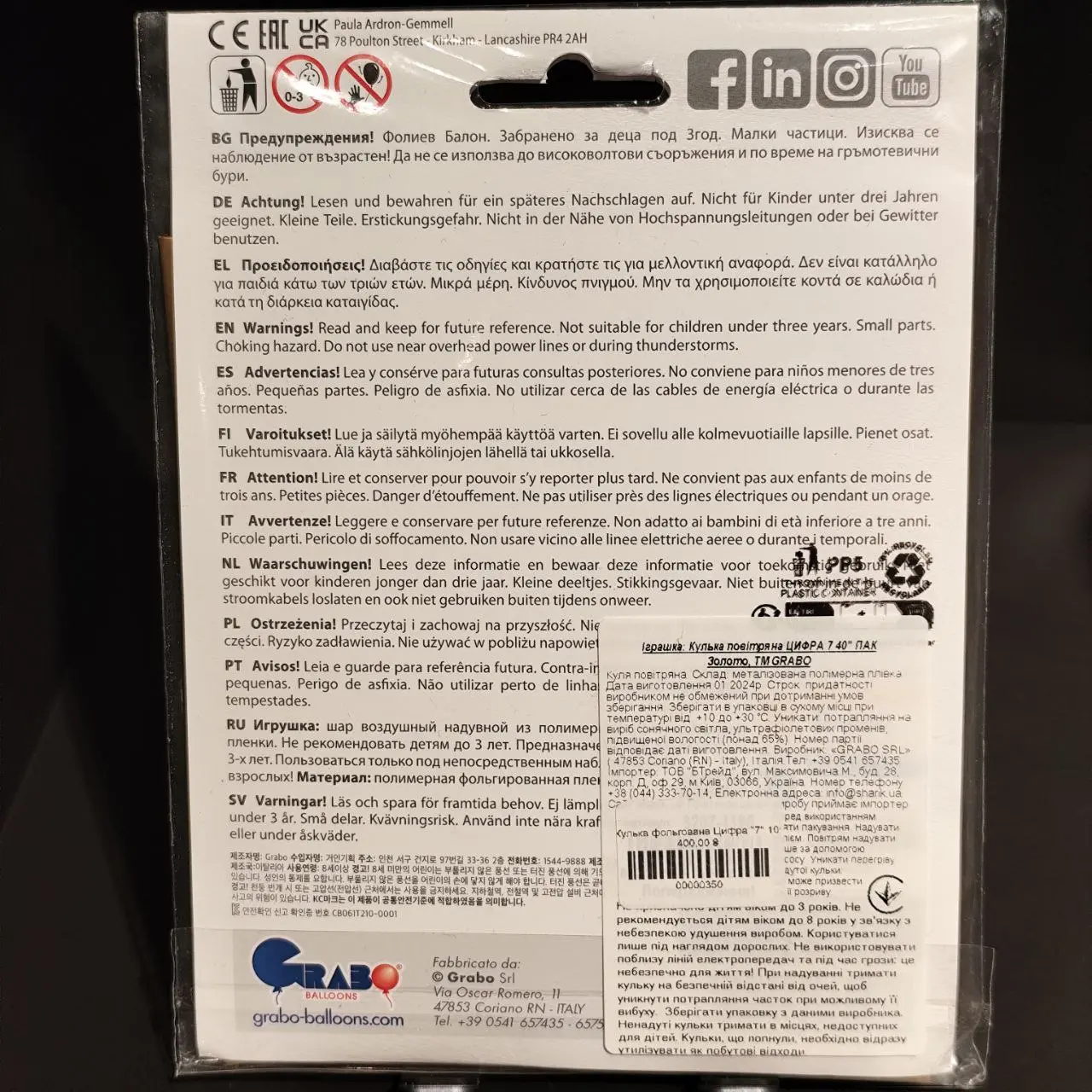 Ця велика фольгована кулька у формі цифри “7” стане яскравою прикрасою будь-якої вечірки чи свята. Завдяки якісним матеріалам і насиченому золотому кольору, вона привертає увагу і додає урочистості атмосфері.