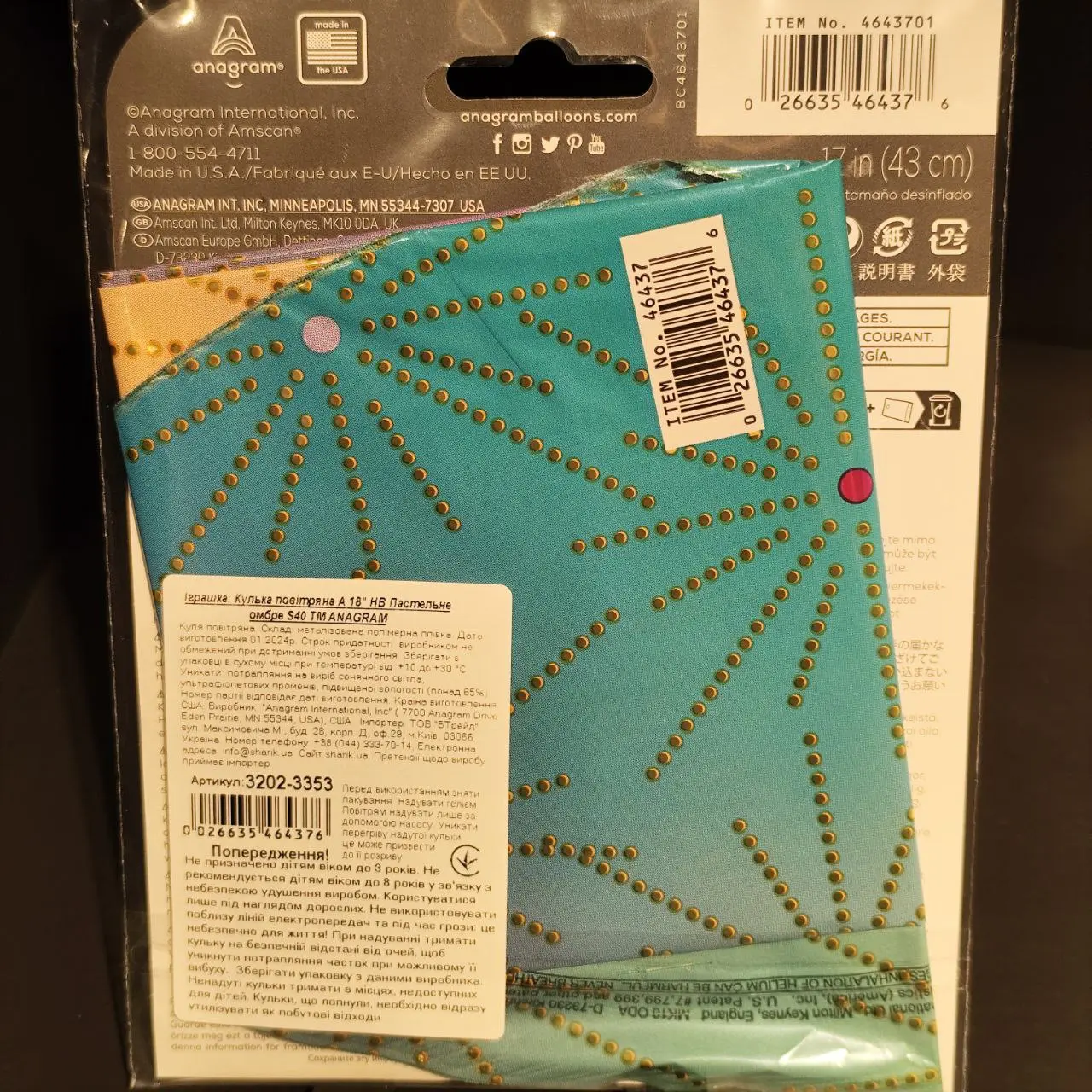 Кулька фольгована Пастельне омбре, 18”