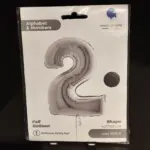 Кулька з цифрою 2 у сріблястому кольорі — яскравий та стильний акцент для будь-якої урочистості. Вона ідеально підходить для дитячих днів народження, ювілеїв, весіль або корпоративних свят. Ця якісна фольгована кулька наповнюється гелієм або повітрям і здатна тримати форму протягом тривалого часу.