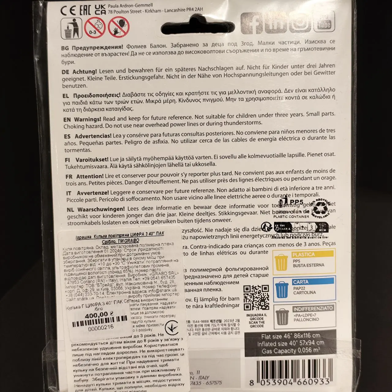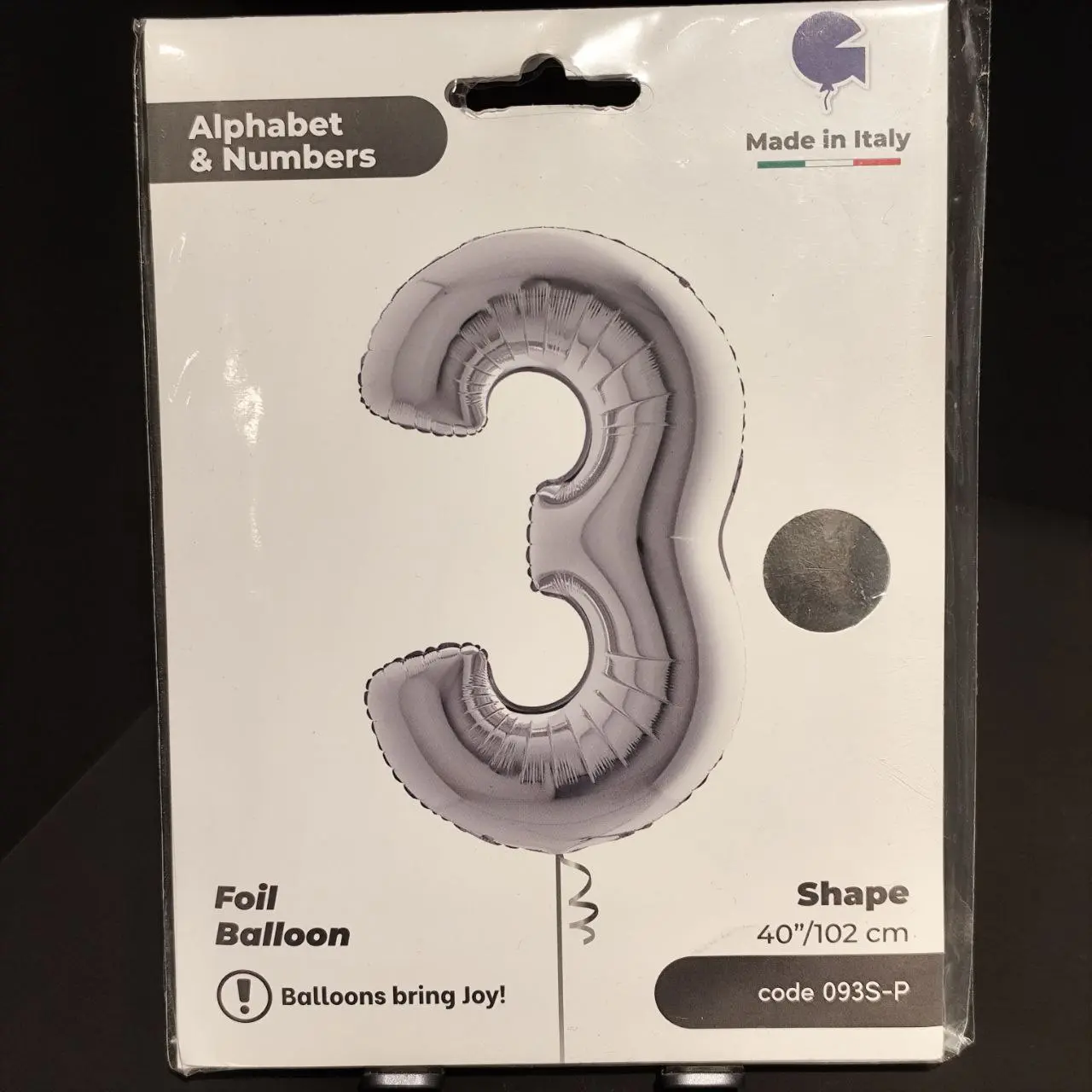 Зробіть ваше свято особливим з цією стильною кулькою у формі цифри 3! Ця срібляста кулька на 100 см стане чудовим декором для дня народження, ювілею чи тематичної вечірки. Її легко надути і встановити, вона відразу привертає увагу гостей. Додайте до своєї композиції ще більше яскравості й радості за доступною ціною.
