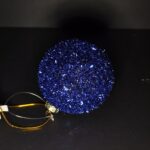 Поверхня кулі вкрита блискітками, що м’яко відбивають світло. Ймовірно, виготовлена з пластику або скла. Компактний розмір зручний для розміщення в будь-якому інтер’єрі.