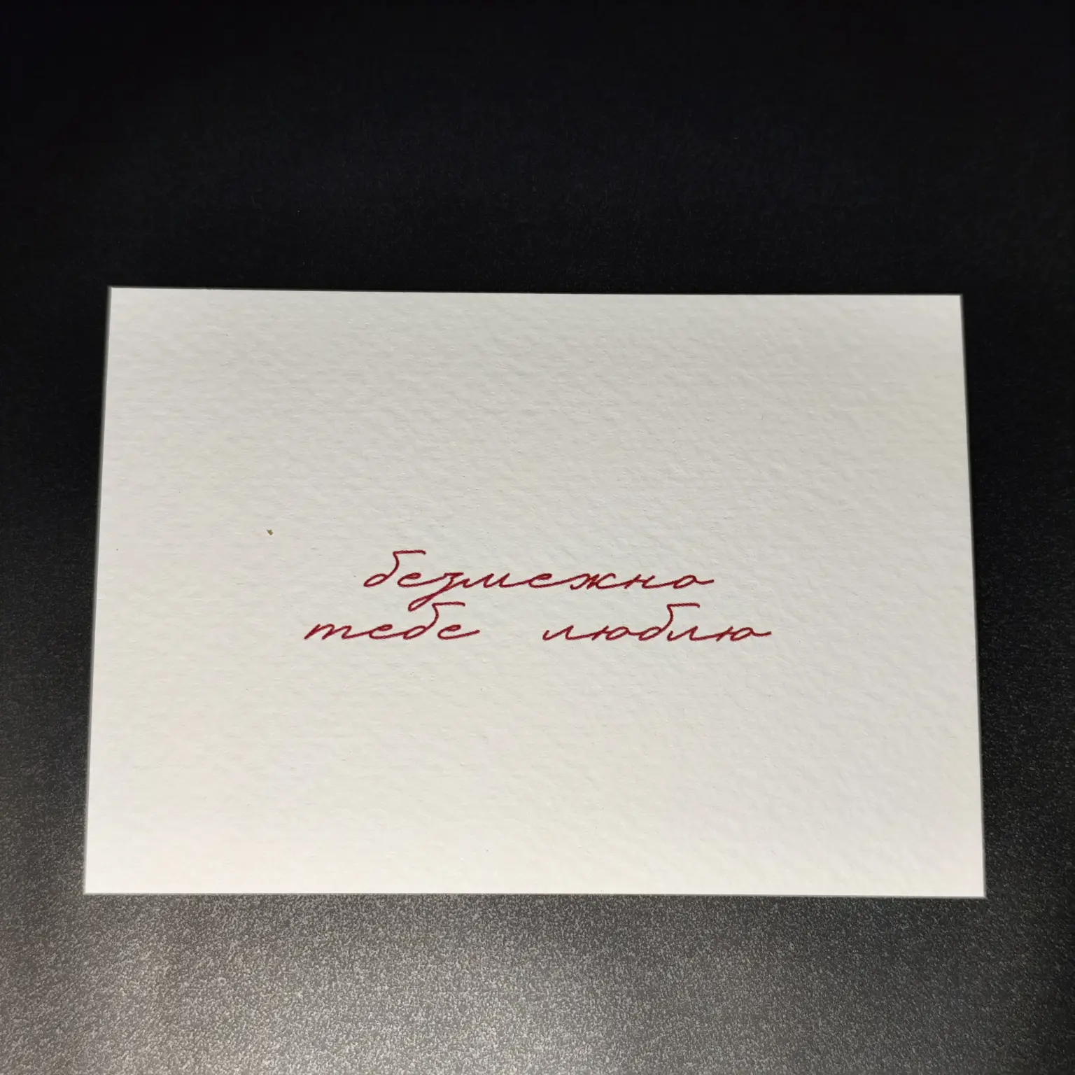 Листівка з плотного картону з надисом “Безмежно тебе люблю” розміром 10*7 см