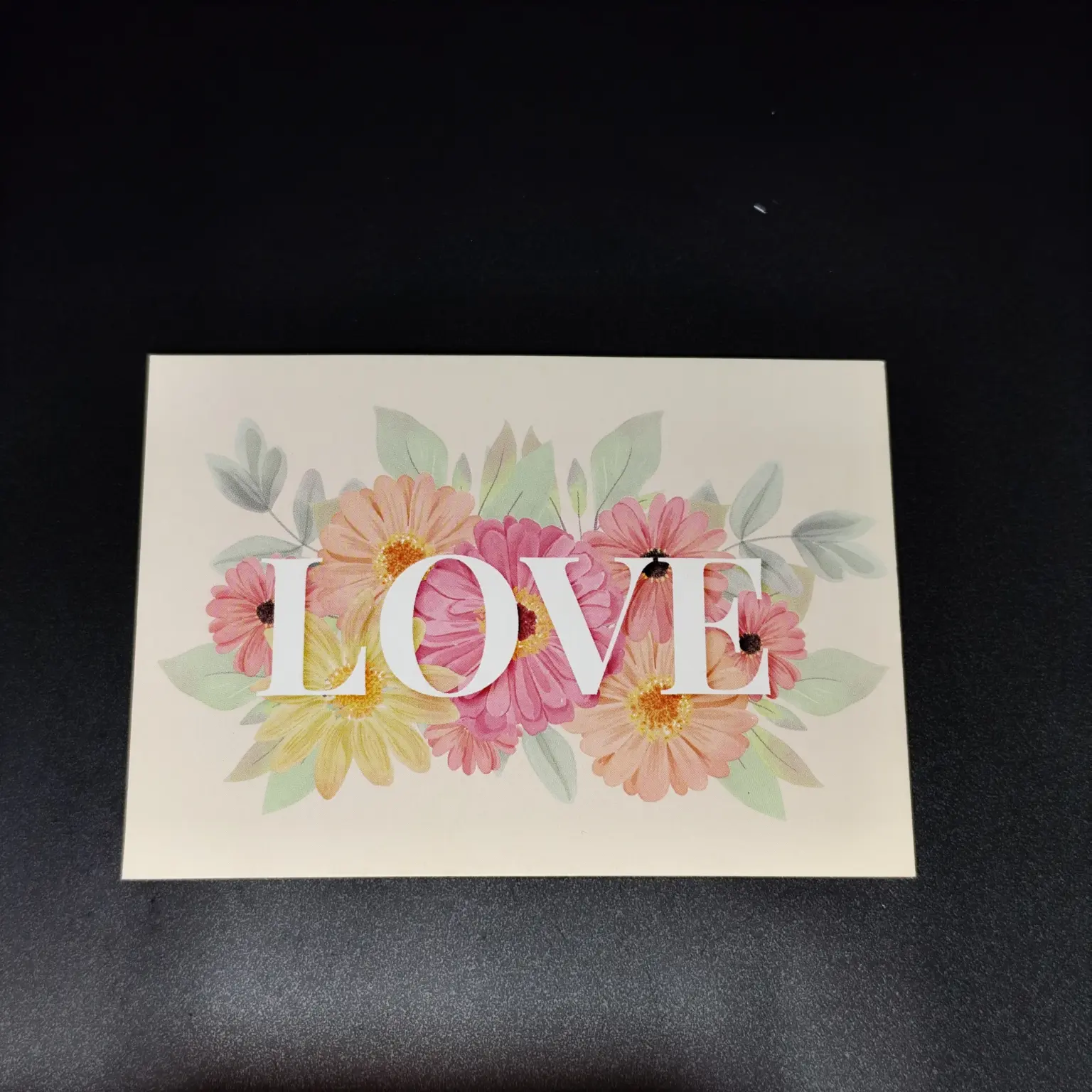 Листівка з плотного картону з надисом “Love” Квіти розміром 10*7 см