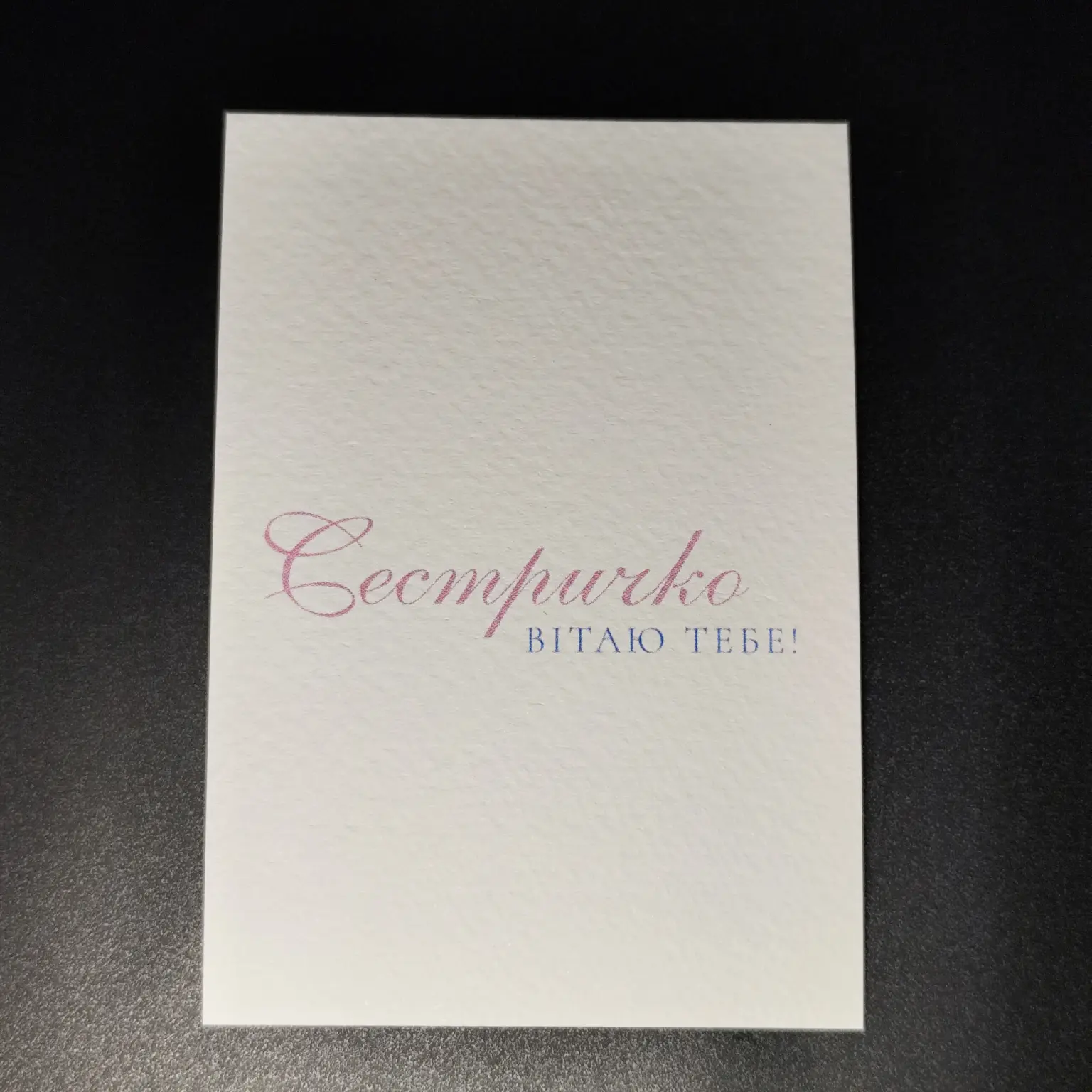 Листівка з плотного картону з надисом “Сестричко, вітаю тебе!” розміром 10*7 см