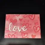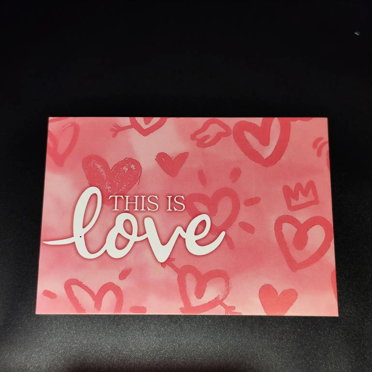 Листівка з плотного картону з надисом “This is love” рожеві сердечка розміром 10*7 см