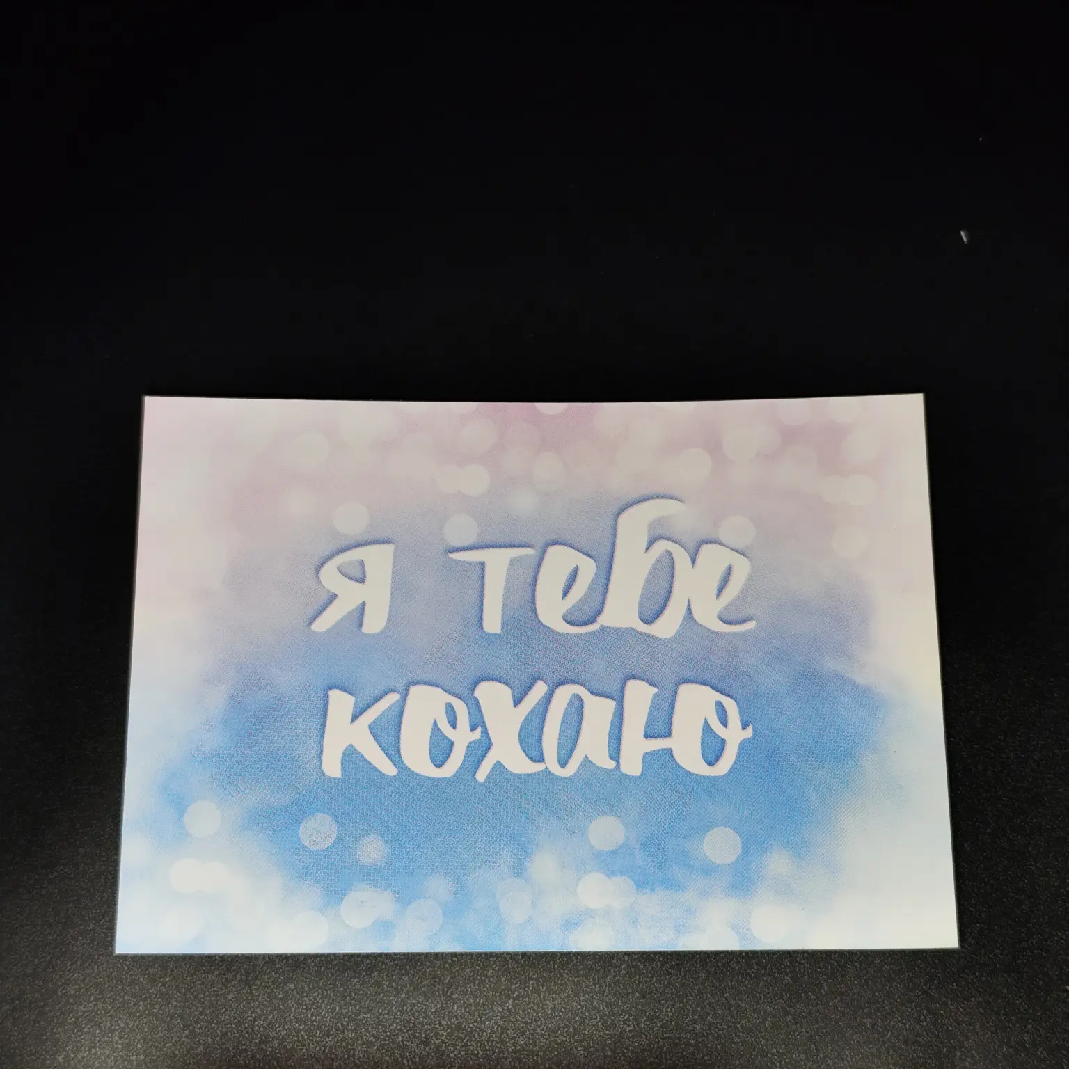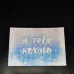 Листівка з плотного картону з надисом “Я тебе кохаю” блакитна розміром 10*7 см