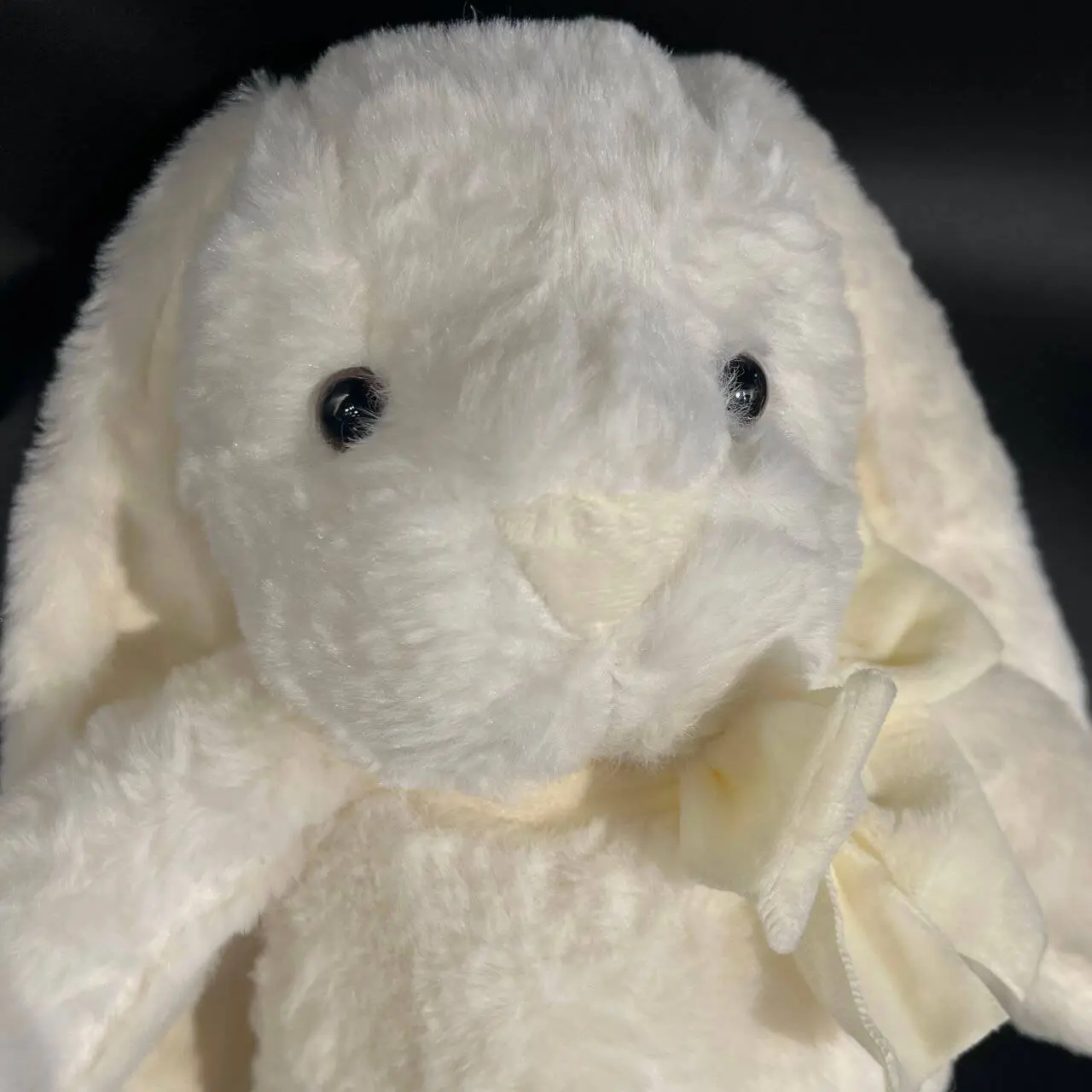 Цей чарівний плюшевий зайчик випромінює ніжність та затишок. Його м’яка шерсть приємна на дотик, а довгі вушка додають особливого шарму. Витончена оксамитова стрічка на шиї підкреслює його вишуканий стиль. Він стане чудовим подарунком або милим доповненням до букета, даруючи тепло та радість своїм власникам.