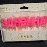 Набір свічок для торта З ДНЕМ НАРОДЖЕННЯ, рожеві