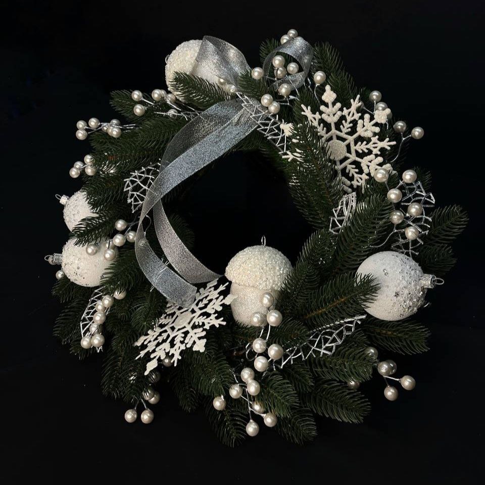 Такий вінок стане доречним подарунком на Новий рік, приємною дякою партнеру чи стильним декором для дому. Його універсальність дозволяє поєднувати з класичним і сучасним інтер’єром, створюючи атмосферу чистоти та світла.