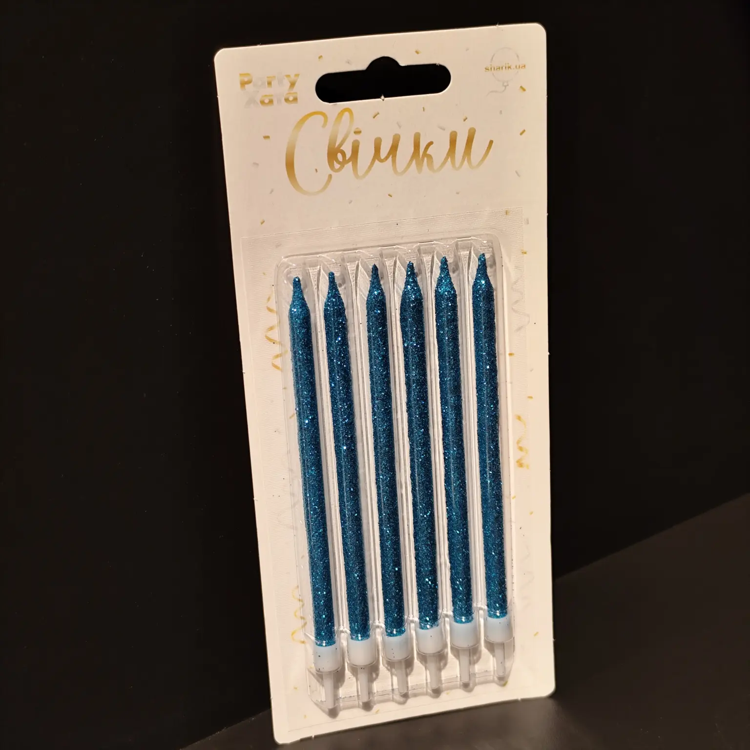 Оригінальні свічки з блиском — ідеальний вибір для створення особливого настрою на вашому святкуванні. Їхній насичений синій колір додасть чарівності тортам будь-якого стилю. Свічки безпечні у використанні, легко встановлюються і довго горять, забезпечуючи чудову атмосферу під час святкової вечірки.