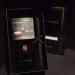 Стильний чорний скляний флакон із золотими деталями створює елегантний акцент в інтер’єрі.