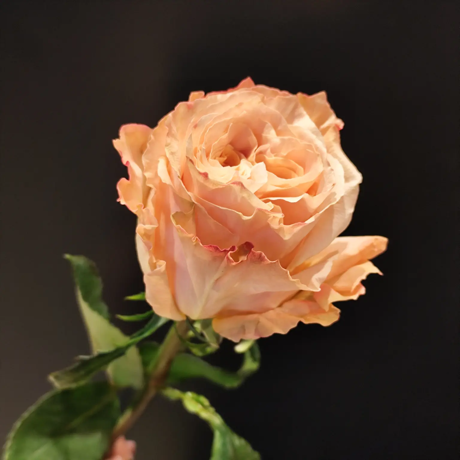 Троянда Shimer вирізняється своїм неповторним переливом кольору — ніжний кремовий відтінок плавно переходить у рожевий, створюючи ефект легкого сяйва. Хвилясті пелюстки надають квітці романтичності та елегантності, завдяки чому вона стає яскравим акцентом у будь-якій композиції.
